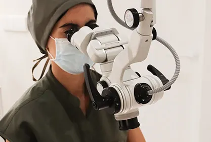 Realizamos todos nuestros tratamientos con magnificación. Contamos con un microscopio dental que nos permite localizar y tratar las raíces de las muelas con una mayor predictibilidad.